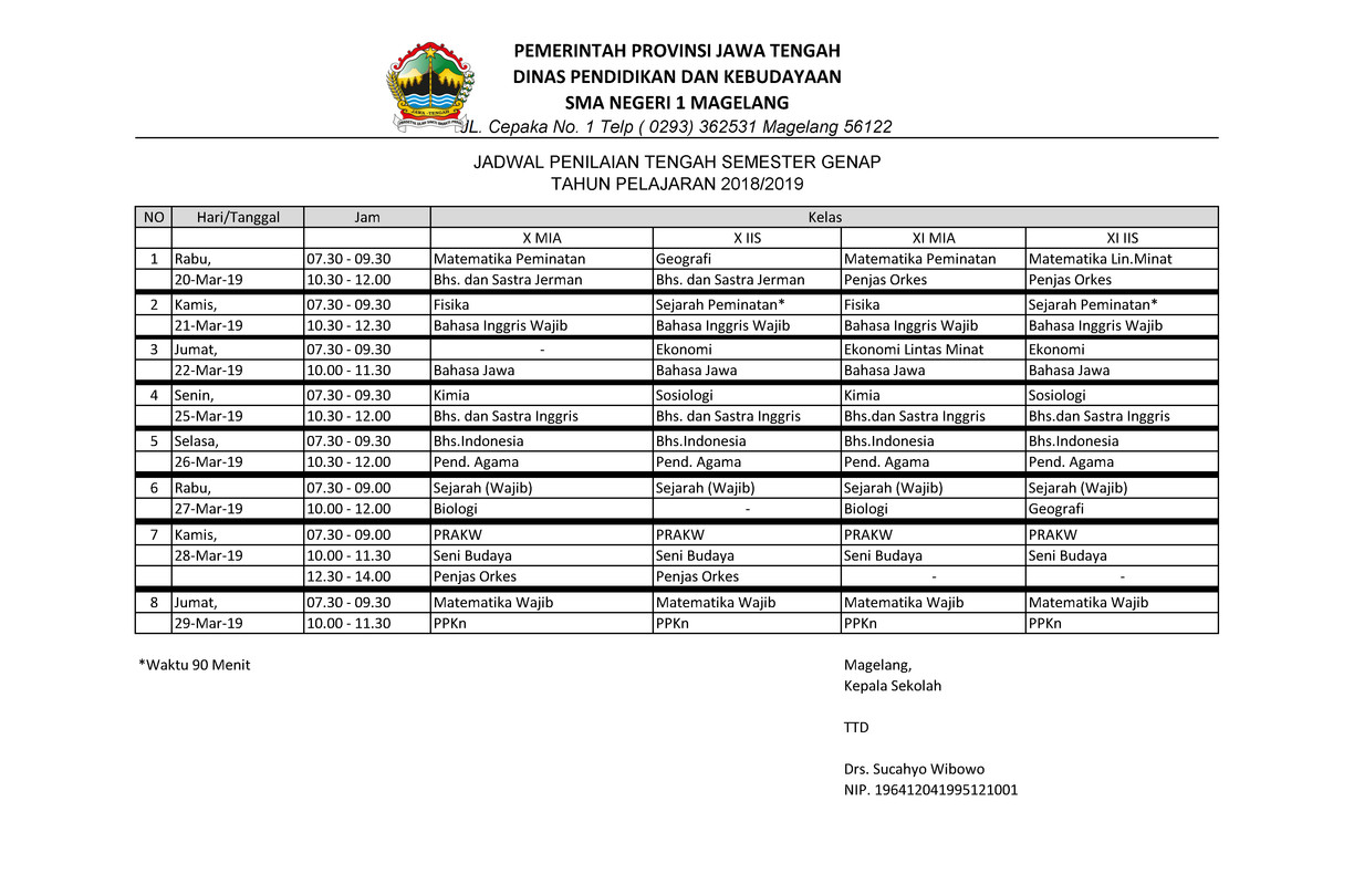 Pada tanggal 20 Maret 2019, SMA Negeri 1 Magelang akan mengadakan Tes Penilaian Tengah Semester 2 untuk Tahun Pelajaran 2018-2019.